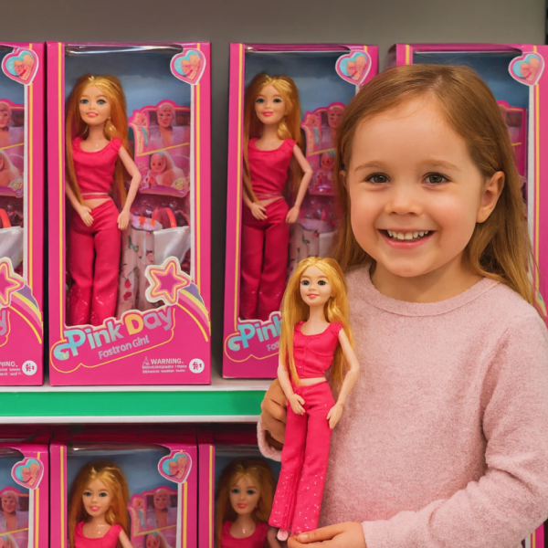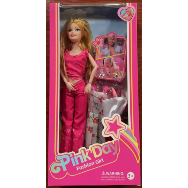 Muñeca fashion estilo “Pink Day” con outfit rosa y accesorios incluidos, regalos para niñas. Presentación en caja, perfecta para venta y exhibición. Modelo CL-HS-052B3. Venta por mayoreo