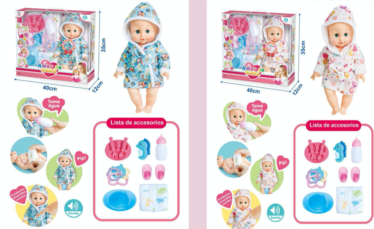 Etiquetas: muñeca interactiva, muñeca toma agua, muñeca hace pipi, muñeca con sonido, muñeca con bata, muñeca con capucha, muñeca con accesorios, muñeca bebé 35cm, muñeca azul, muñeca blanca, muñecas para niñas, muñecas mayoreo