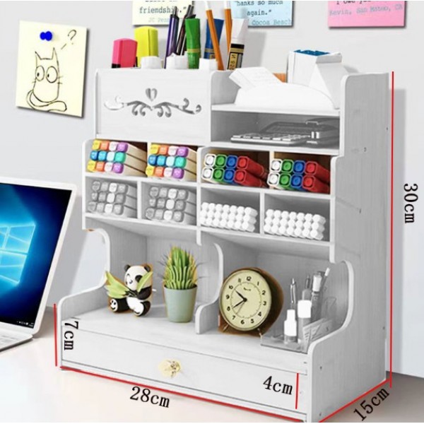 Organizador de escritorio multifuncional con múltiples compartimentos para lápices, incluye cajón inferior para mayor almacenamiento. Diseño moderno Por Mayoreo M9247-10