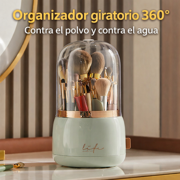 Organizador giratorio de 360° ideal para almacenar brochas de maquillaje y cosméticos de forma ordenada y protegida. Cuenta con tapa transparente tipo domo que ayuda a mantener el contenido limpio, protegido del polvo y de la humedad. Su base giratoria permite acceder fácilmente a todos los artículos sin desorden. Diseño elegante y funcional, perfecto para tocadores, baños, estéticas y uso profesional. Producto práctico y atractivo, ideal para venta por mayoreo. *VIDEO ILUSTRATIVO*