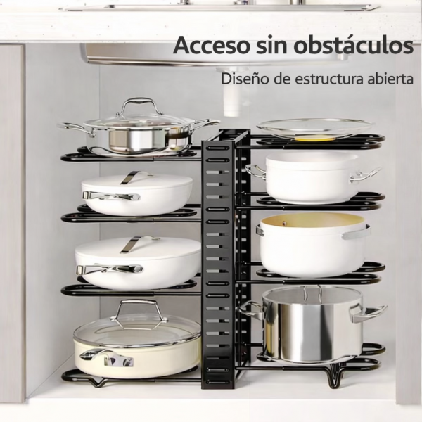 Etiquetas: organizador de ollas, estante metálico cocina, organizador de sartenes, soporte para ollas, organizador ajustable, organizador de tapas, organizador multiusos cocina, estante para ollas y sartenes, rack metálico cocina, organizador ahorra espacio
