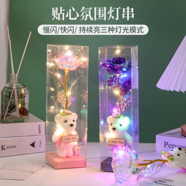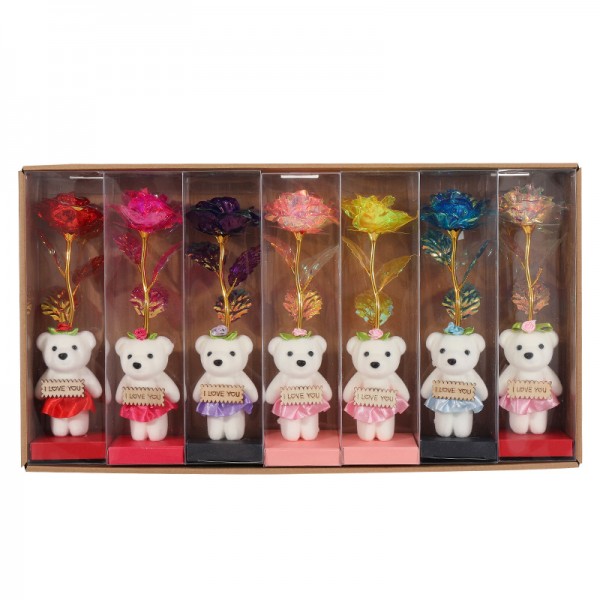 Oso decorativo con flor artificial y luz LED integrada. Ideal como regalo, decoración, escritorio o detalle especial para San Valentin. Venta por mayoreo XH-0300.