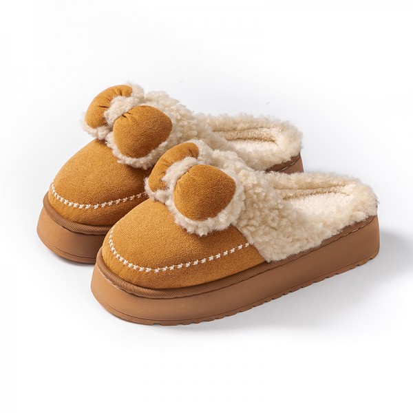 Pantuflas de peluche tallas 3–6, modelo cálido y acolchado con suela antideslizante. Diseño tierno con moño y detalles en felpa. Ideales para invierno, regalo o uso diario. Venta por mayoreo CZH-0127