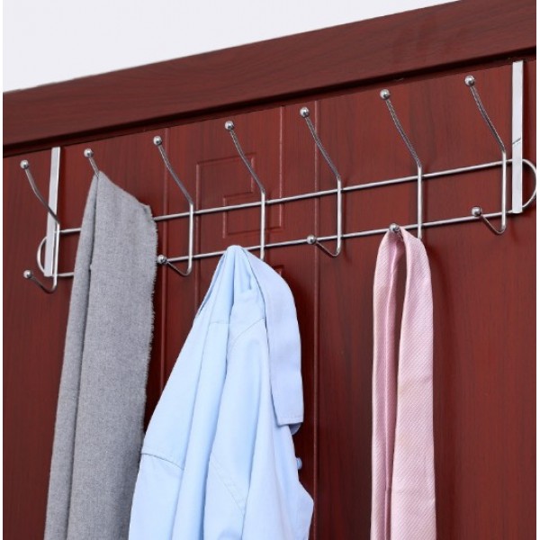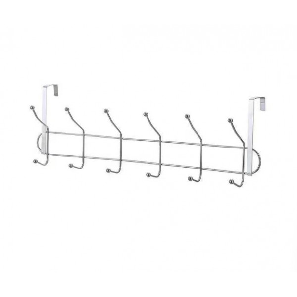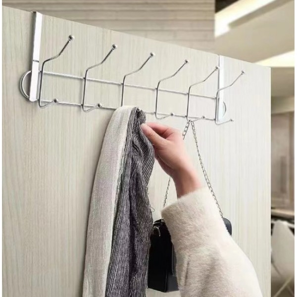 Etiquetas: Perchero metálico para puerta con múltiples ganchos, ideal para colgar ropa, toallas, bolsos, mochilas, llaves o accesorios sin necesidad de perforar. por Mayoreo P-11984, perchero, colgador de puerta, organizador de ropa, accesorios de hogar, perchero metálico, ganchos para baño, mayoreo hogar
