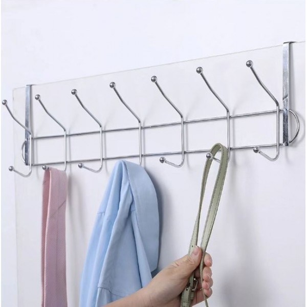 Perchero metálico para puerta con múltiples ganchos, ideal para colgar ropa, toallas, bolsos, mochilas, llaves o accesorios sin necesidad de perforar. por Mayoreo P-11984