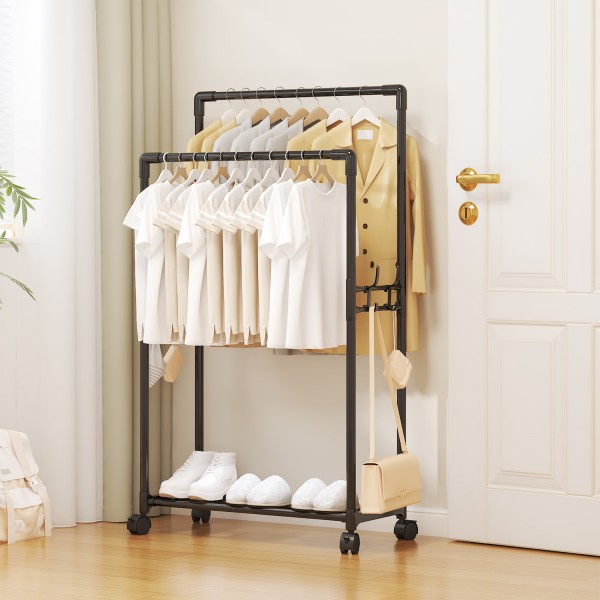 Perchero Organizador Doble con Ruedas y Repisa Inferior Mayoreo P-11102