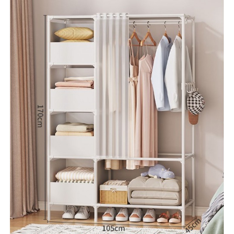 Perchero organizador de 105 cm con repisas laterales y cortina, armario abierto para ropa, zapatos y accesorios. Por Mayoreo V2-2309