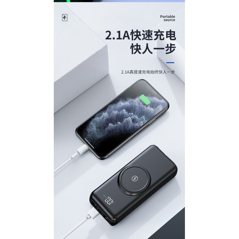 Batería portátil de 20000mAh con pantalla digital de carga, diseño moderno con grabado, salida dual USB y carga rápida 2.1A al por mayor XB-5537
