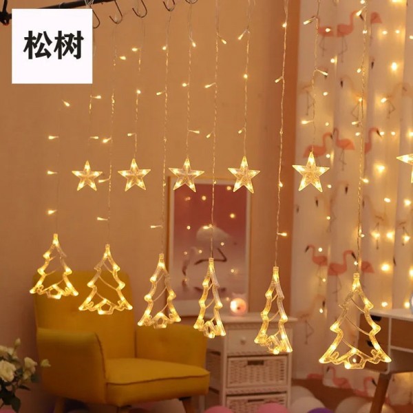 Etiquetas: serie navideña, luces navideñas, decoración navidad, luces led doradas, luces cálidas, estrellas y pinos led, adornos luminosos, serie decorativa, luces de cortina, navidad interior, luces navideñas hogar