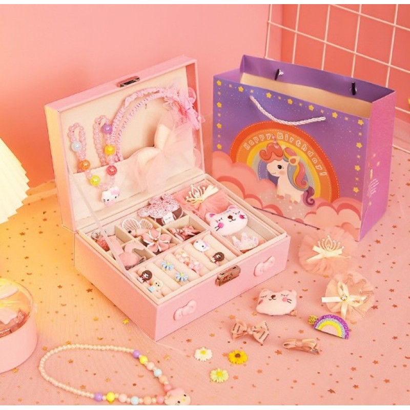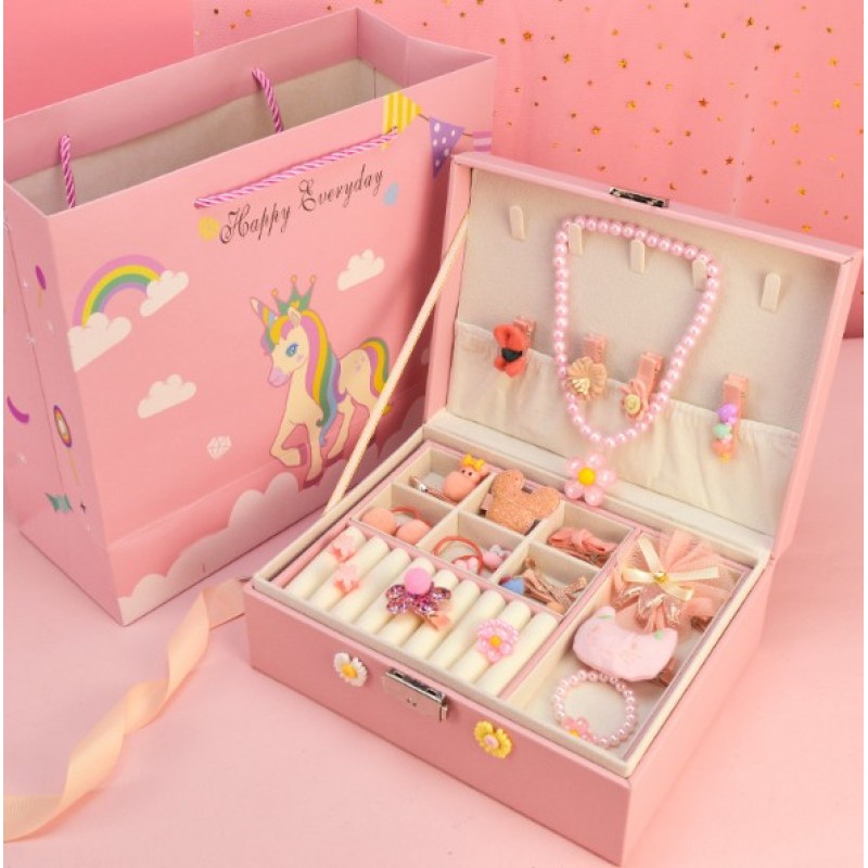 Etiquetas: Set de Accesorios para Niñas con estuche tipo joyero Unicornio Kawaii de alta gamaPor Mayoreo C4-016, set de accesorios, joyero niña, moños infantiles, broches para niña, regalo unicornio, caja de accesorios, estuche kawaii, set para regalo infantil