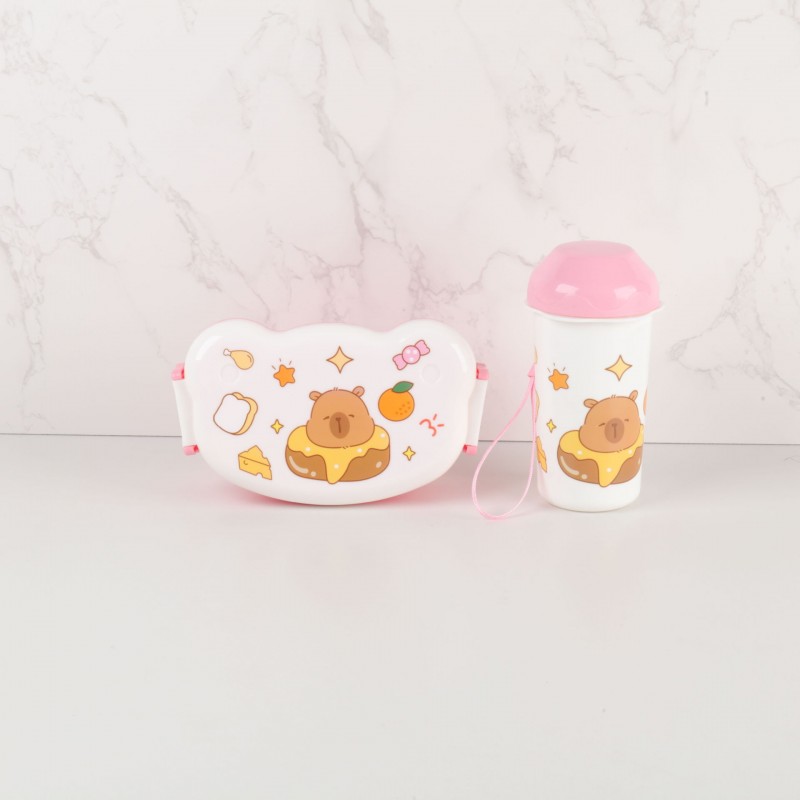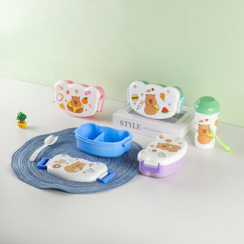 Lonchera con dibujos animados de Capibara set de topper con vaso para niños al por mayor 163119
