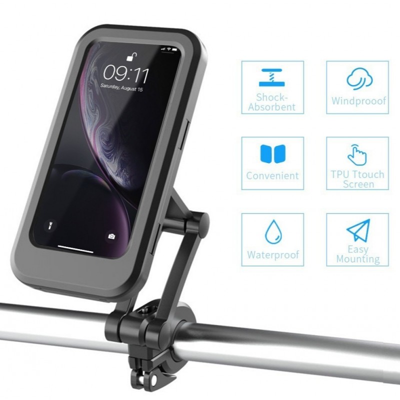 Soporte para celular de bicicleta impermeable con rotación 360° para manubrio compatible con smartphones hasta 6.7 pulgadas RS-345