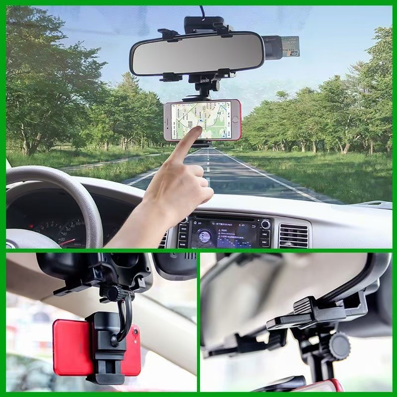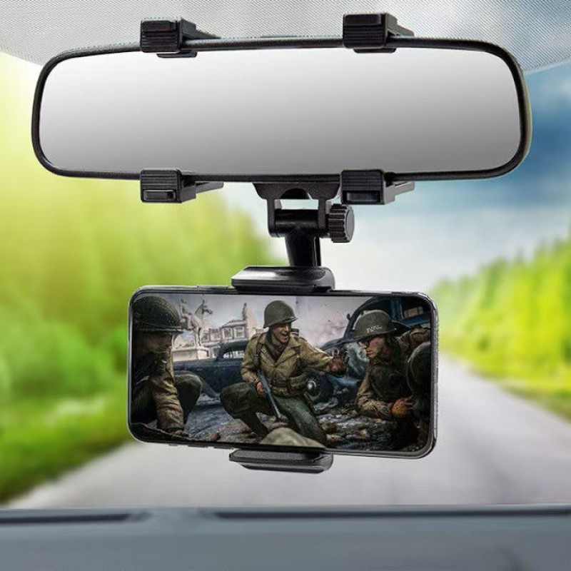 Soporte ajustable para celular con clip giratorio 360° para retrovisor de auto, ideal para navegación GPS y manos libres, modelo NU-0226-, venta por mayoreo
