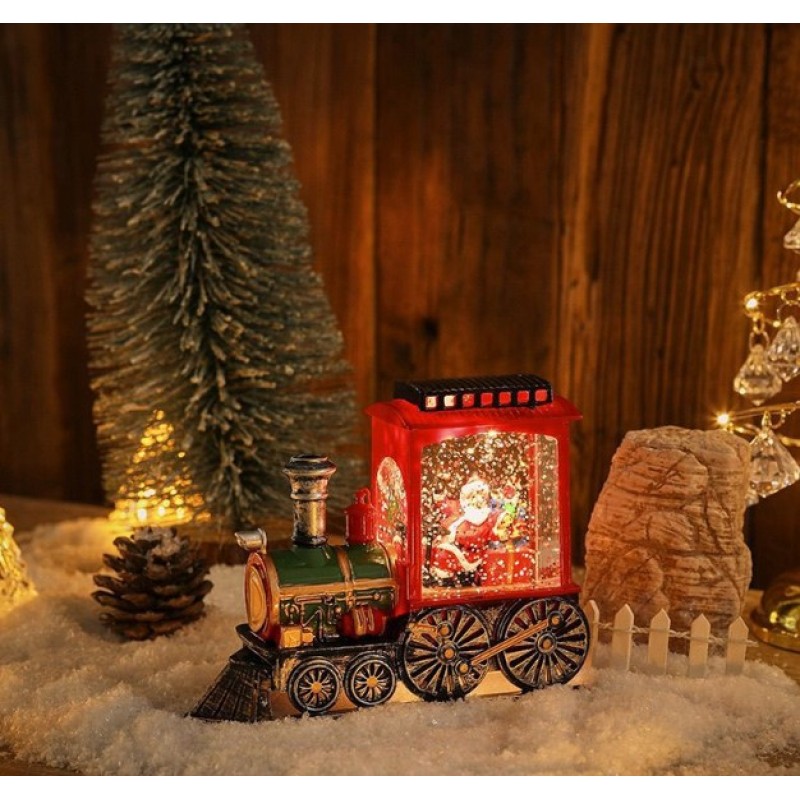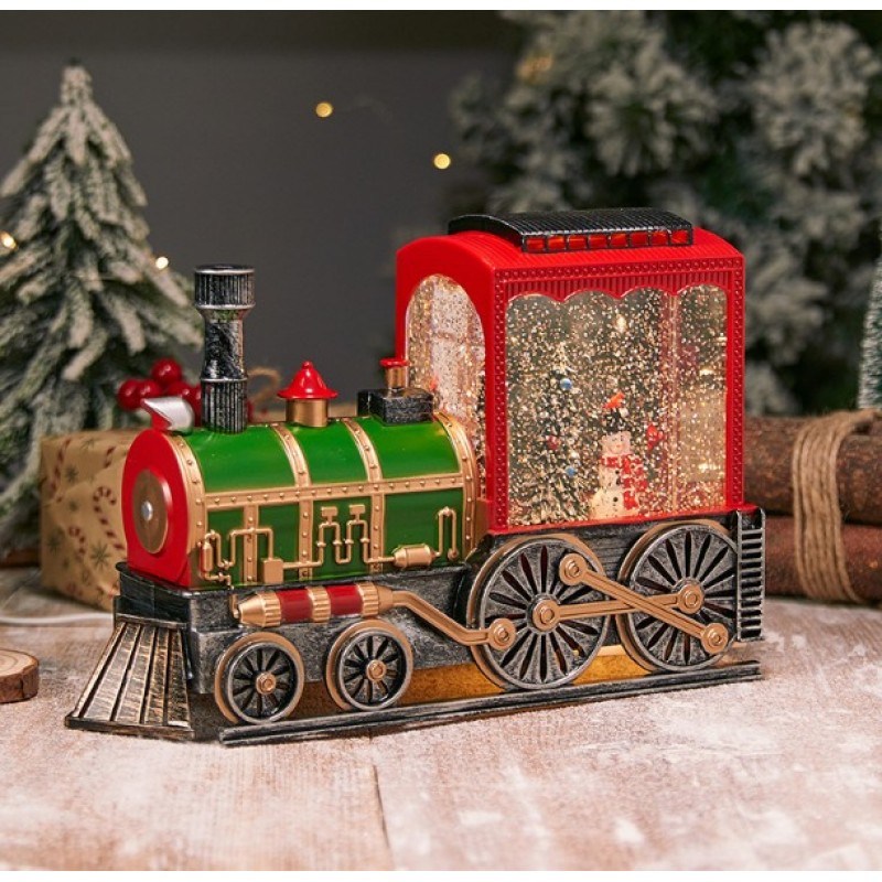 Adorno navideño tren musical con luz LED y escarcha, Santa Claus con regalos, decoración de mesa navideña clásica Por Mayoreo D-21669